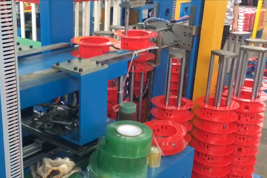 2. Entrega del carrete de plástico a la posición de enrollar el alambre.