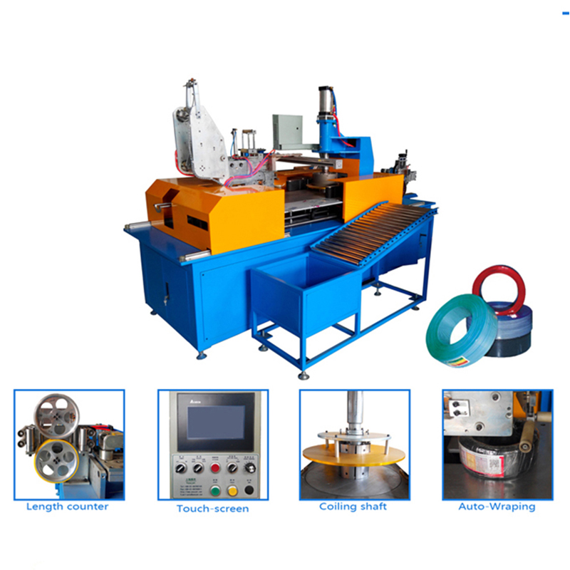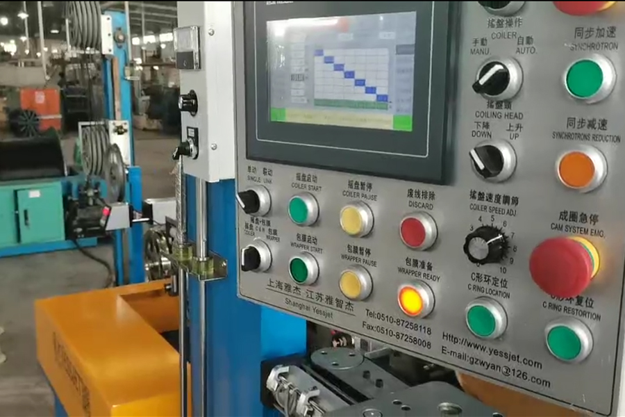 El dispositivo puede enrollar automáticamente cables y alambres en bucles y luego envolverlos utilizando materiales como película de PVC, película de PE, película de PP o cinta de papel. Detección automática de errores: si la máquina no funciona correctamente, identificará automáticamente el problema y alertará al operador para garantizar un mantenimiento y funcionamiento adecuados. Sistema de disposición de cables de servomotor: utilice este sistema para lograr un bobinado ordenado y una disposición óptima de los cables. Amplia gama de aplicaciones: Ideal para bobinado y embalaje automático de alta velocidad de diversos alambres y cables, incluidos alambres electrónicos BV, BVR, RVV, UL y alambres de flores. Diseño único de anillo en C: cuenta con dos rodillos de plástico que envuelven directamente las bobinas con el anillo en C. Estas características permiten que la máquina ofrezca alta eficiencia, automatización y ahorro de mano de obra en la producción de cables y alambres, lo que conduce a una mejor eficiencia de producción y calidad del producto.
